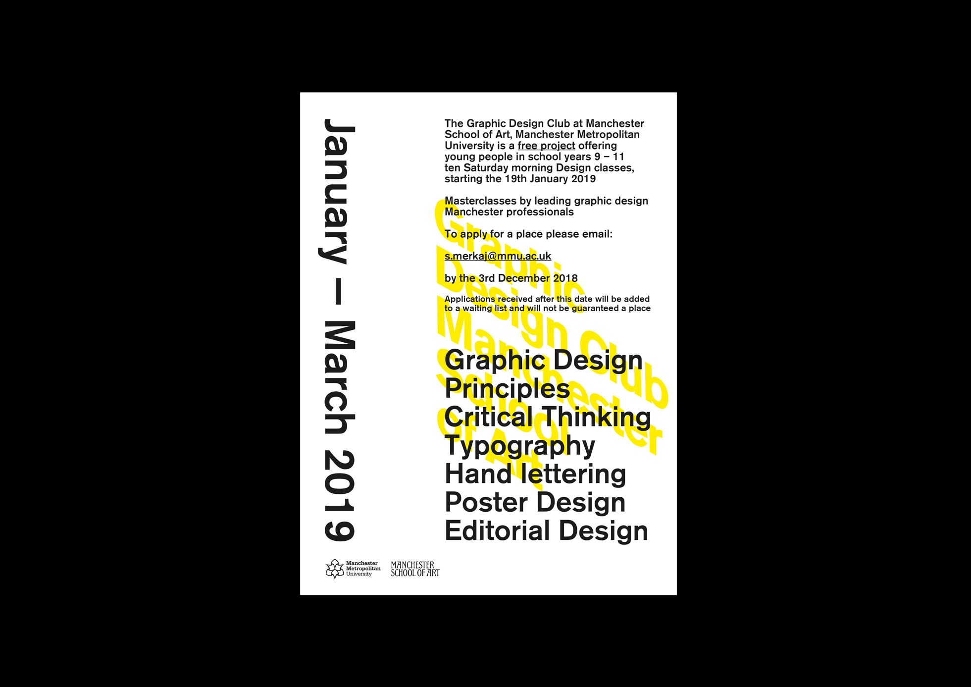 The Graphic Design Club at Manchester School of Art is a free project offering young people in school years 9-11 the opportunity to learn, explore graphic design, critical thinking, typography and so much more.